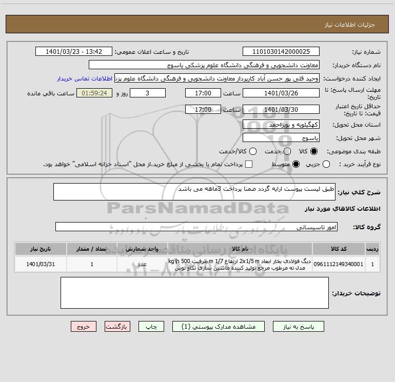نام دستگاه خریدار:معاونت دانشجویی و فرهنگی دانشگاه علوم پزشکی یاسوج