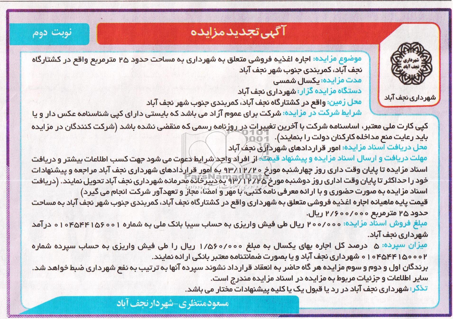 دستگاه مزایده گزار : شهرداری نجف آباد