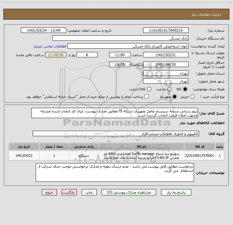 شرح کلی نیاز: بروز رسانی نسخه سیستم عامل تجهیزات شبکه f5 مطابق مدارک پیوست، ایران کد انتخاب شده مشابه وجهت اعلان قیمت انتخاب گردیده است