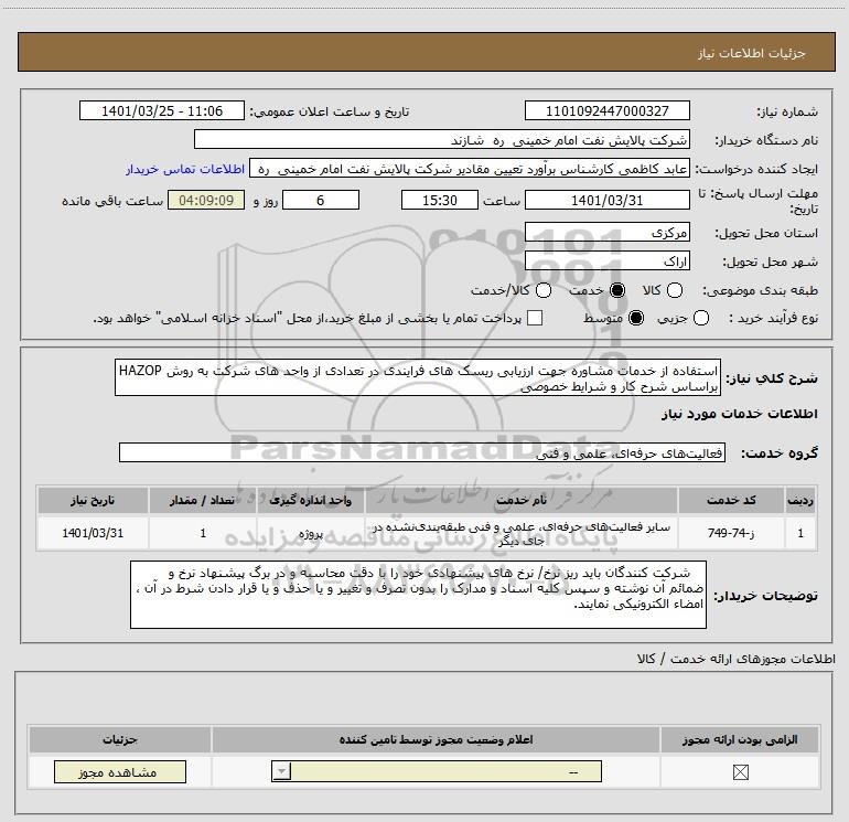 نام دستگاه خریدار:شرکت پالایش نفت امام خمینی ره شازند