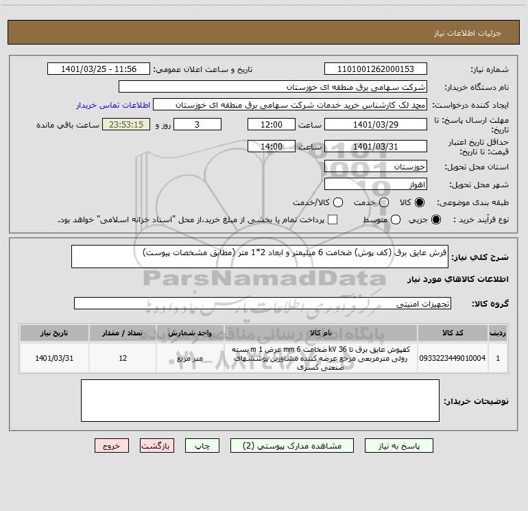 نام دستگاه خریدار:شرکت سهامی برق منطقه ای خوزستان