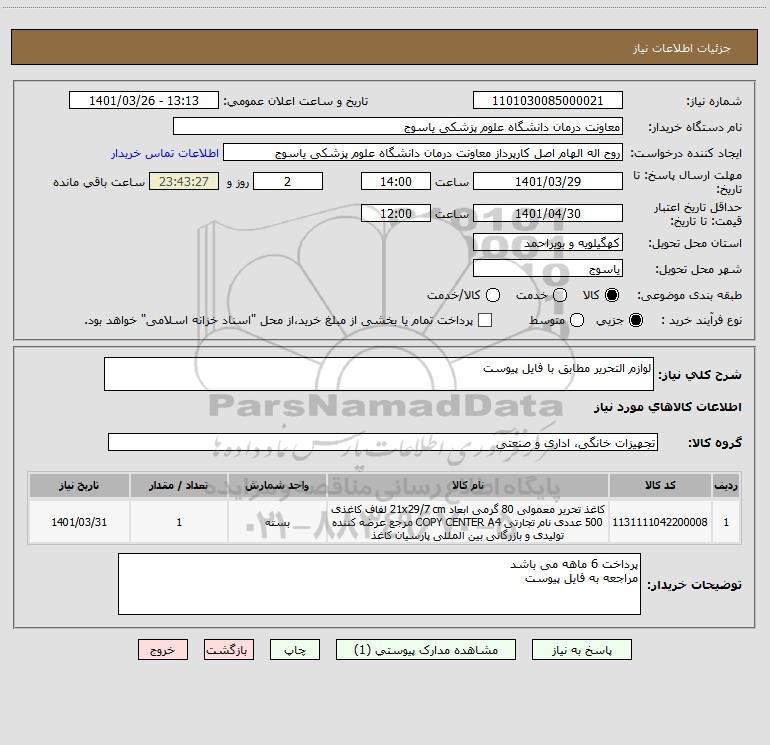 شرح کلی نیاز: لوازم التحریر مطابق با فایل پیوست