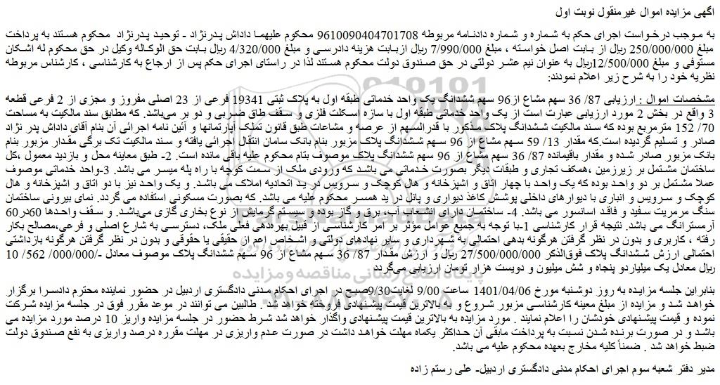 اگهی مزایده اموال غیرمنقول نوبت اول