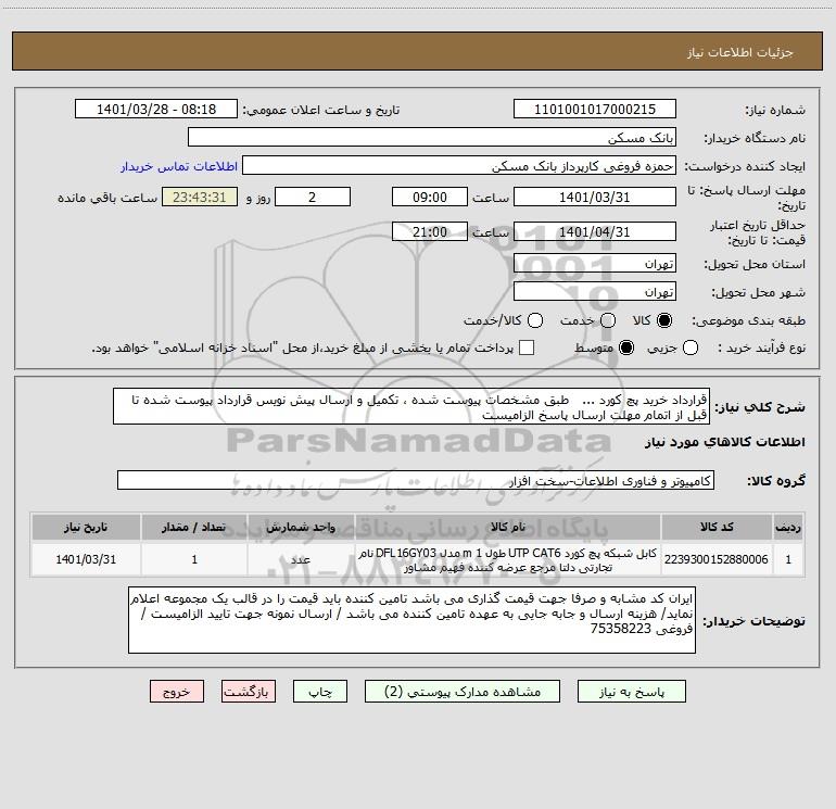 شرح کلی نیاز: قرارداد خرید پچ کورد ... طبق مشخصات پیوست شده ، تکمیل و ارسال پیش نویس قرارداد پیوست شده تا قبل از اتمام مهلت ارسال پاسخ الزامیست