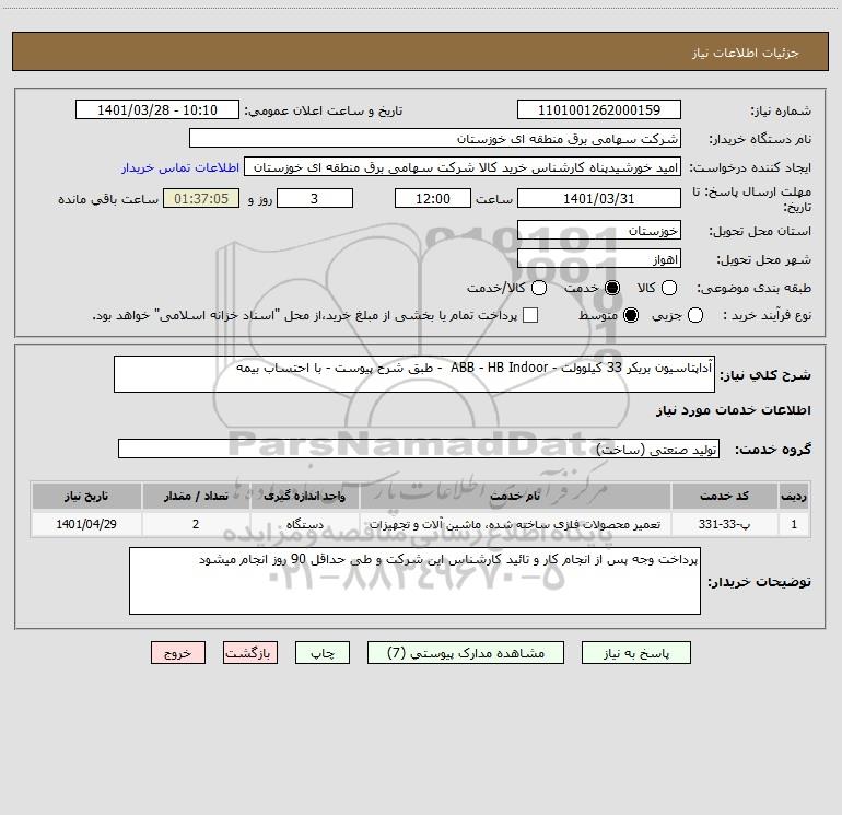 شرح کلی نیاز: آداپتاسیون بریکر 33 کیلوولت - ABB - HB Indoor - طبق شرح پیوست - با احتساب بیمه