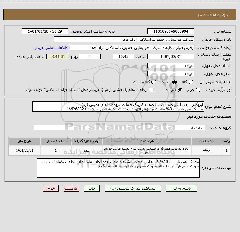 استعلام ایزوگام سقف آشپزخانه vip ساختمان کترینگ هما در فرودگاه امام خمینی (ره)- ییمانکار می بایست 9% مالیات بر ارزش افزوده می باشدکارشناس علوی کیا 46626832, استعلام ایزوگام سقف آشپزخانه vip ساختمان کترینگ هما در فرودگاه امام خمینی (ره)- ییمانکار می بایست 9% مالیات بر ارزش افزوده می باشدکارشناس علوی کیا 46626832