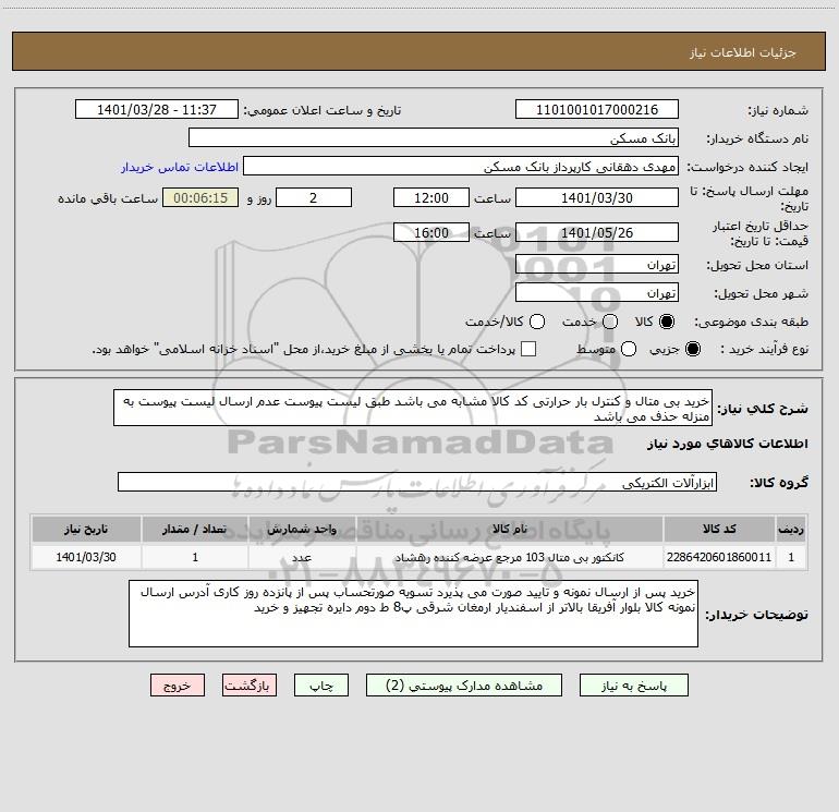 استعلام خرید بی متال و کنترل بار حرارتی کد کالا مشابه می باشد طبق لیست پیوست عدم ارسال لیست پیوست به منزله حذف می باشد, استعلام خرید بی متال و کنترل بار حرارتی کد کالا مشابه می باشد طبق لیست پیوست عدم ارسال لیست پیوست به منزله حذف می باشد