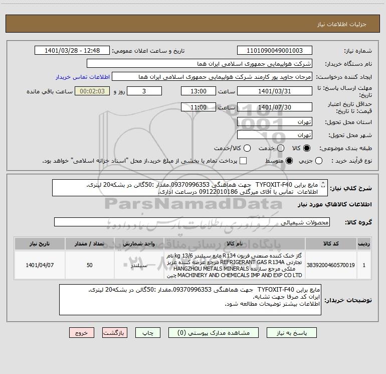 نام دستگاه خریدار:شرکت هواپیمایی جمهوری اسلامی ایران هما