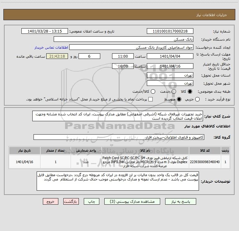شرح کلی نیاز: خرید تجهیزات غیرفعال شبکه (اشرفی اصفهانی) مطابق مدارک پیوست، ایران کد انتخاب شده مشابه وجهت اعلان قیمت انتخاب گردیده است