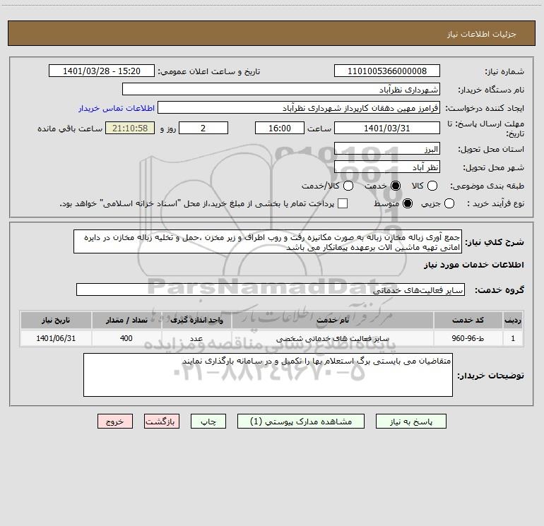 نام دستگاه خریدار:شهرداری نظرآباد