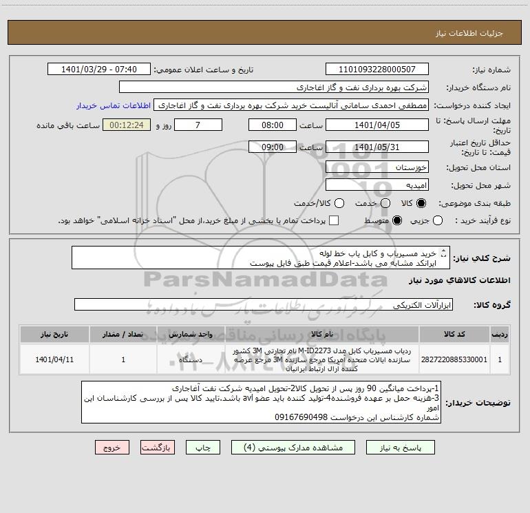 شرح کلی نیاز: خرید مسیریاب و کابل یاب خط لوله