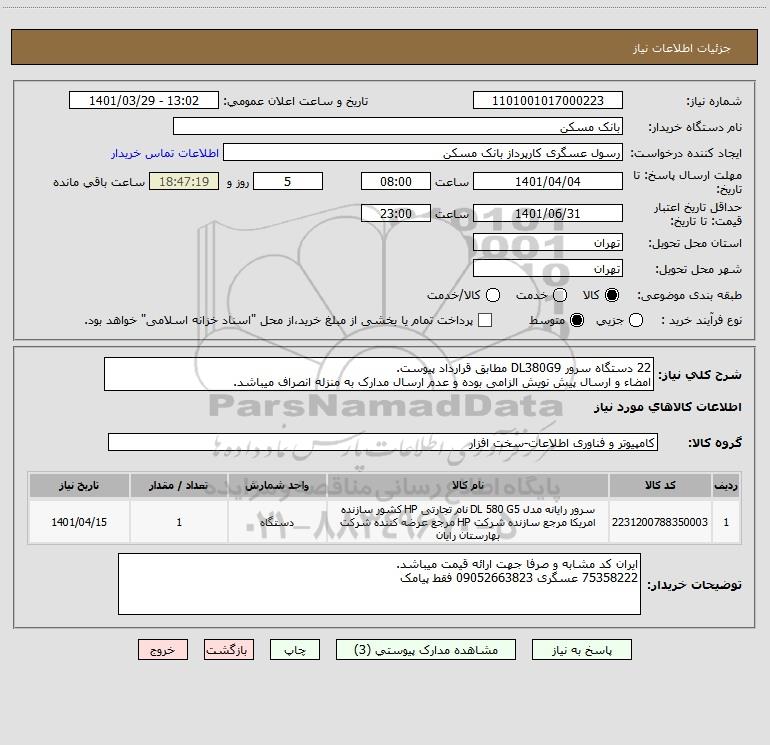 استعلام 22 دستگاه سرور DL380G9 مطابق قرارداد پیوست. امضاء و ارسال پیش نویش الزامی بوده و عدم ارسال مدارک به منزله انصراف میباشد., استعلام 22 دستگاه سرور DL380G9 مطابق قرارداد پیوست. امضاء و ارسال پیش نویش الزامی بوده و عدم ارسال مدارک به منزله انصراف میباشد.