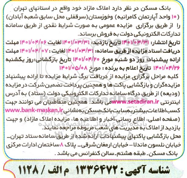 مزایده فروش املاک مازاد شماره مزایده 48.1401.34 نوبت اول
