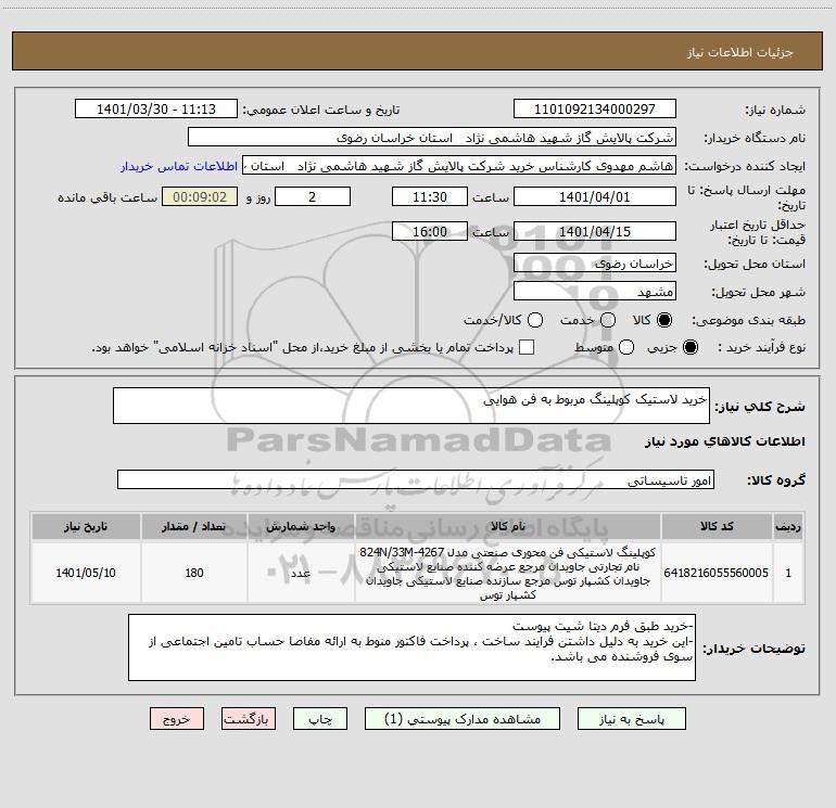 نام دستگاه خریدار:شرکت پالایش گاز شهید هاشمی نژاد استان خراسان رضوی