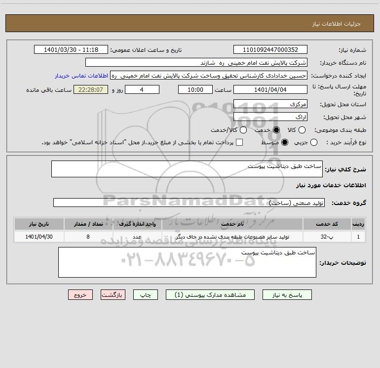 نام دستگاه خریدار:شرکت پالایش نفت امام خمینی ره شازند