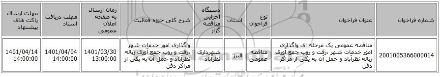 مناقصه، مناقصه عمومی یک مرحله ای واگذاری امور خدمات شهر ،رفت و روب جمع آوری زباله نظرآباد و حمل آن به یکی از مراکز دفن, مناقصه، مناقصه عمومی یک مرحله ای واگذاری امور خدمات شهر ،رفت و روب جمع آوری زباله نظرآباد و حمل آن به یکی از مراکز دفن