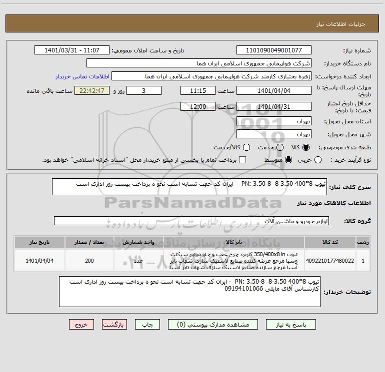 نام دستگاه خریدار:شرکت هواپیمایی جمهوری اسلامی ایران هما