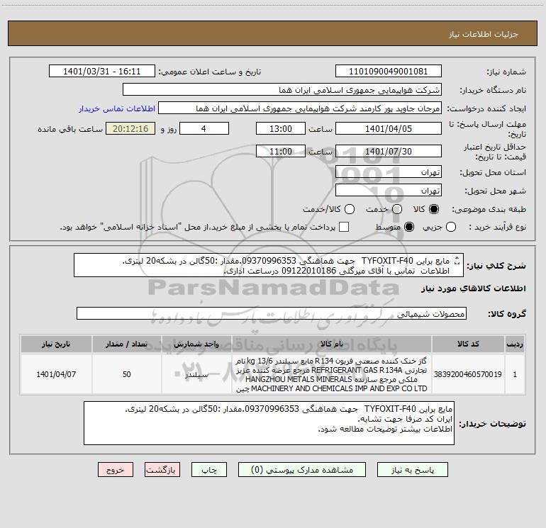 نام دستگاه خریدار:شرکت هواپیمایی جمهوری اسلامی ایران هما
