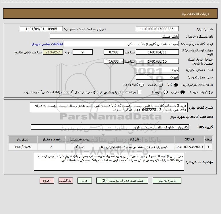 استعلام خرید 3 دستگاه کلاینت با طبق لیست پیوست کد کالا مشابه می باشد عدم ارسال لیست پیوست به منزله حذف می باشد 2-64572751 جهت هرگونه سوال, استعلام خرید 3 دستگاه کلاینت با طبق لیست پیوست کد کالا مشابه می باشد عدم ارسال لیست پیوست به منزله حذف می باشد 2-64572751 جهت هرگونه سوال