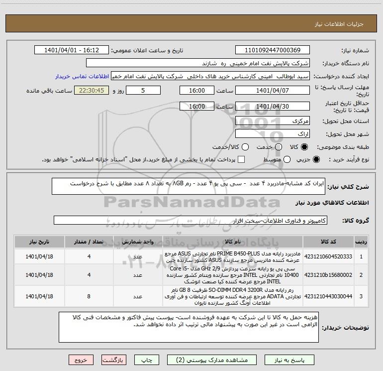 استعلام ایران کد مشابه-مادربرد ۴ عدد - سی پی یو ۴ عدد - رم ۸GB به تعداد ۸ عدد مطابق با شرح درخواست, استعلام ایران کد مشابه-مادربرد ۴ عدد - سی پی یو ۴ عدد - رم ۸GB به تعداد ۸ عدد مطابق با شرح درخواست