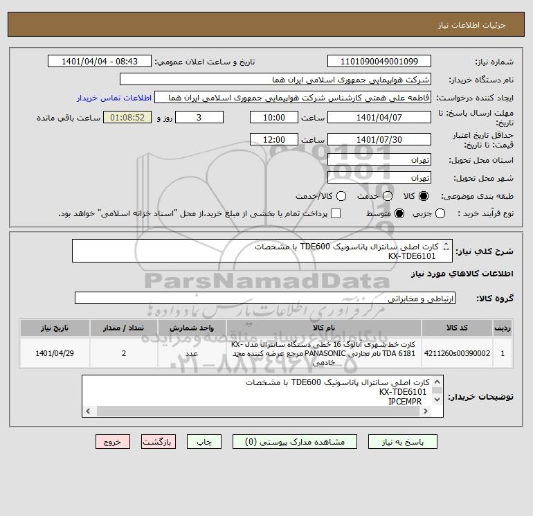 نام دستگاه خریدار:شرکت هواپیمایی جمهوری اسلامی ایران هما