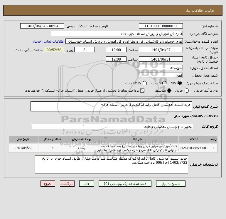 نام دستگاه خریدار:اداره کل اموزش و پرورش استان خوزستان