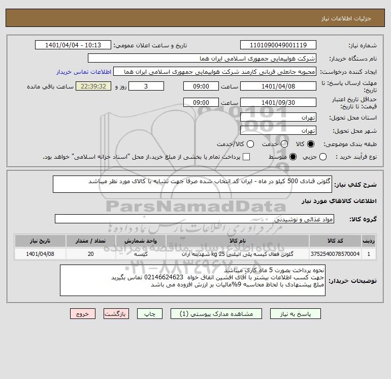 شرح کلی نیاز: گلوتن قنادی 500 کیلو در ماه - ایران کد انتخاب شده صرفا جهت تشابه با کالای مورد نظر میباشد