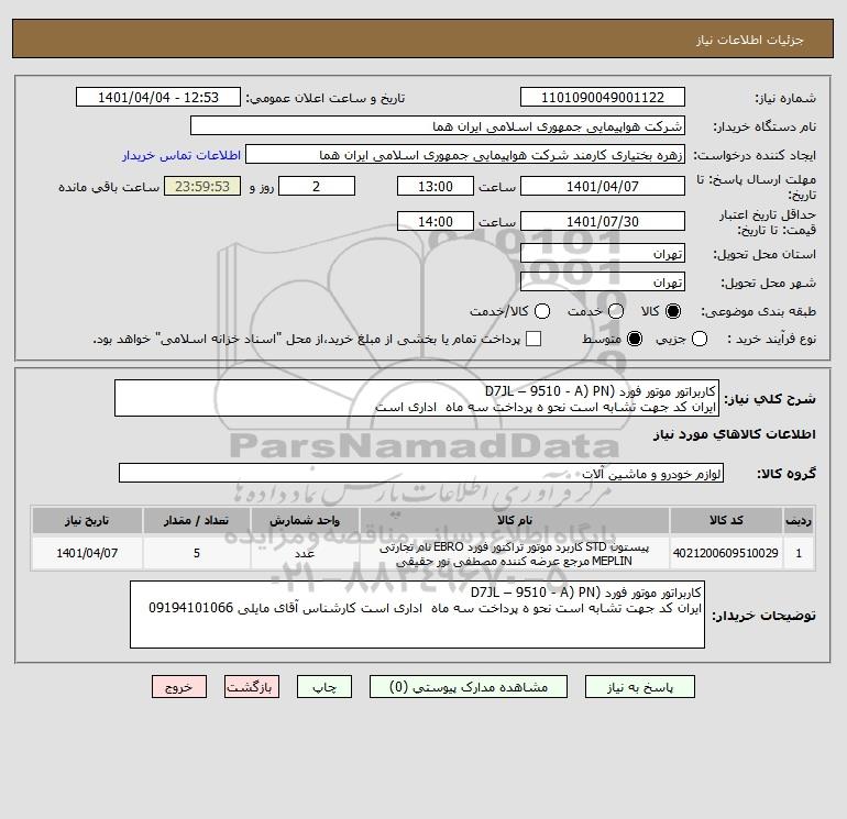 نام دستگاه خریدار:شرکت هواپیمایی جمهوری اسلامی ایران هما