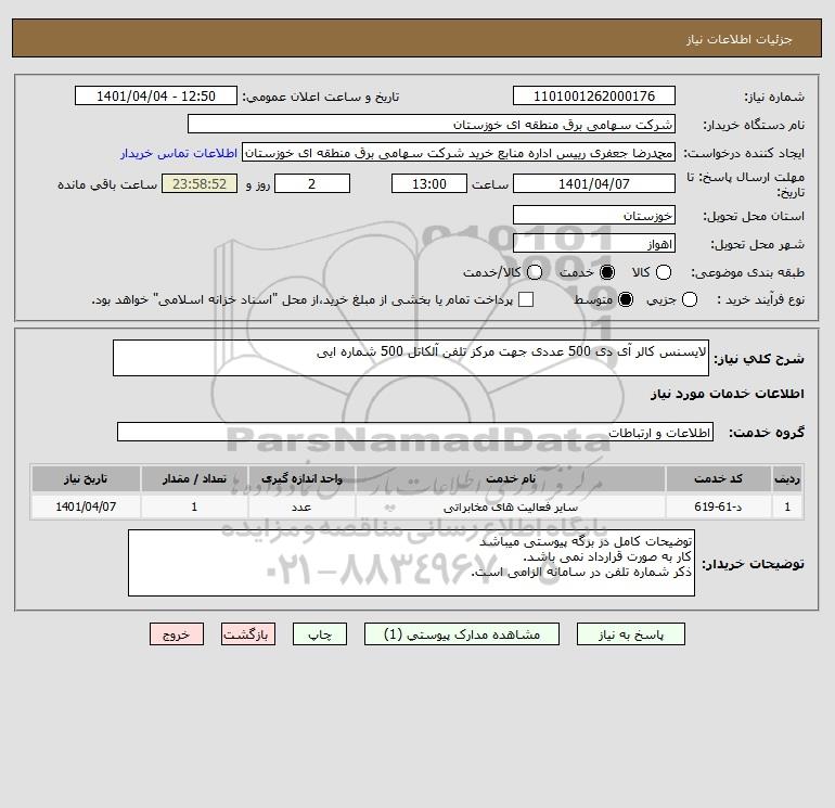 شرح کلی نیاز: لایسنس کالر آی دی 500 عددی جهت مرکز تلفن آلکاتل 500 شماره ایی