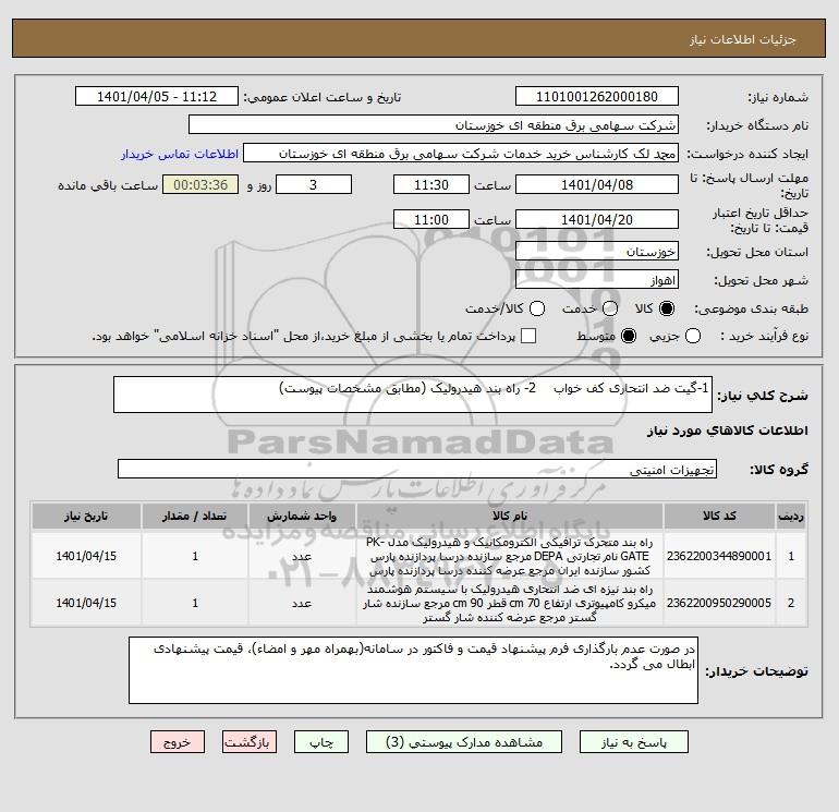 نام دستگاه خریدار:شرکت سهامی برق منطقه ای خوزستان