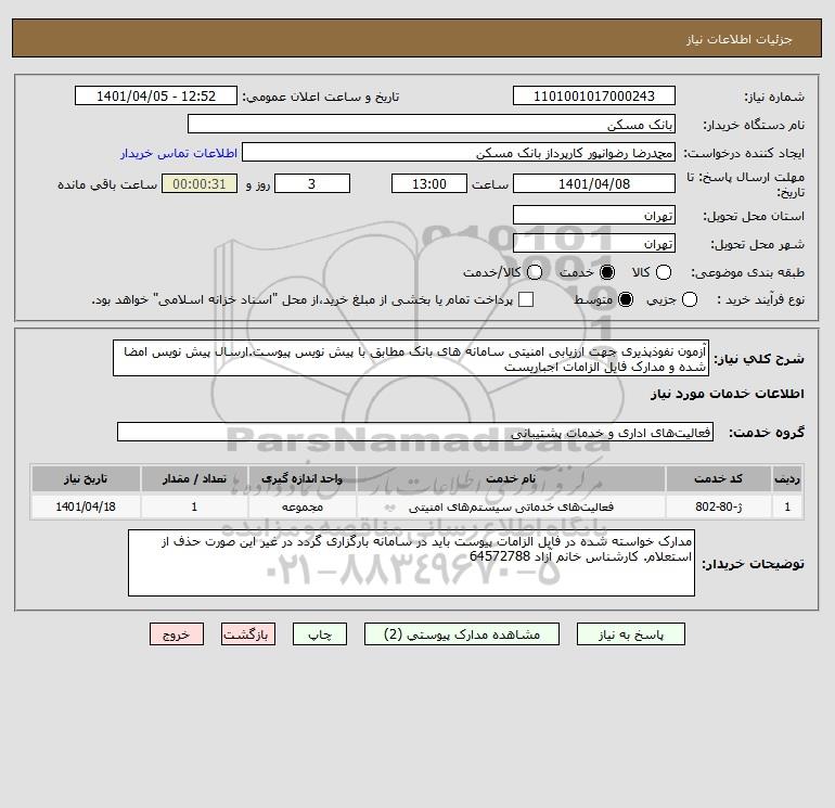 استعلام آزمون نفوذپذیری جهت ارزیابی امنیتی سامانه های بانک مطابق با پیش نویس پیوست.ارسال پیش نویس امضا شده و مدارک فایل الزامات اجباریست, استعلام آزمون نفوذپذیری جهت ارزیابی امنیتی سامانه های بانک مطابق با پیش نویس پیوست.ارسال پیش نویس امضا شده و مدارک فایل الزامات اجباریست