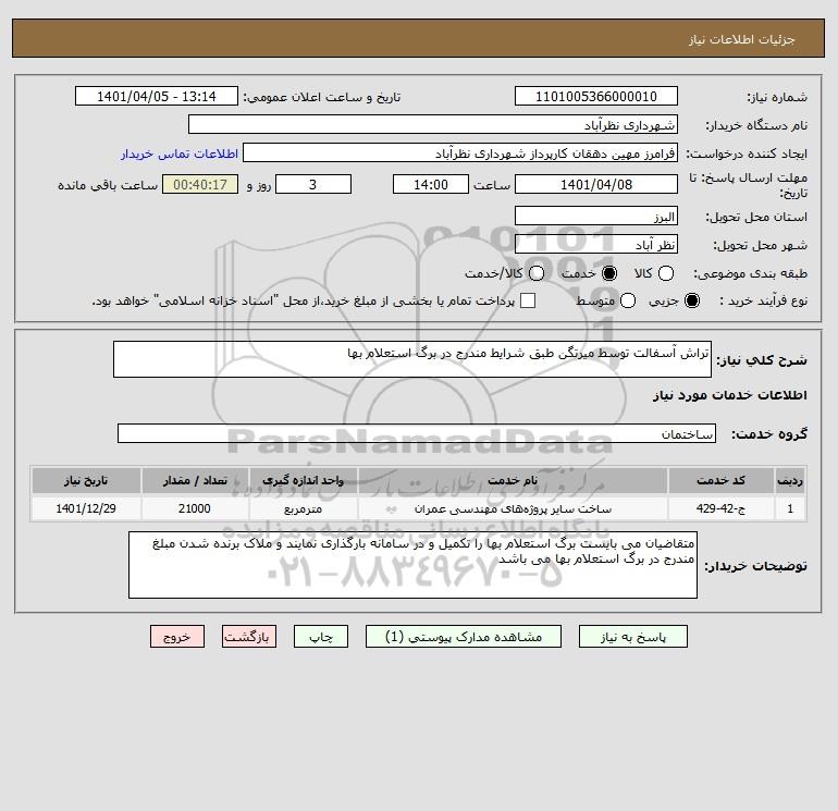 استعلام تراش آسفالت توسط میرتگن طبق شرایط مندرج در برگ استعلام بها, استعلام تراش آسفالت توسط میرتگن طبق شرایط مندرج در برگ استعلام بها