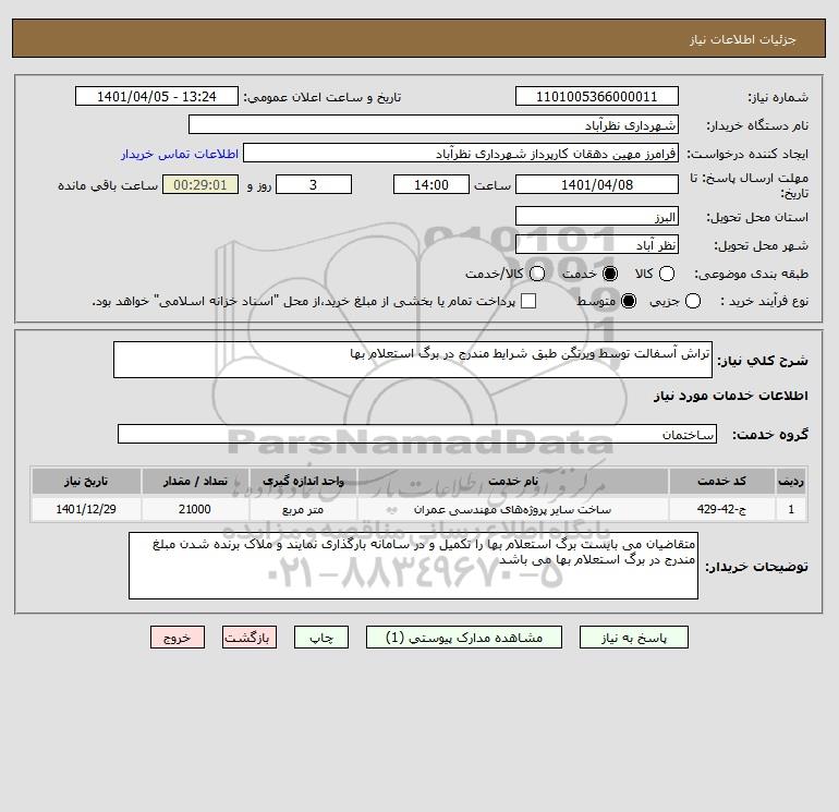 شرح کلی نیاز: تراش آسفالت توسط ویرتگن طبق شرایط مندرج در برگ استعلام بها