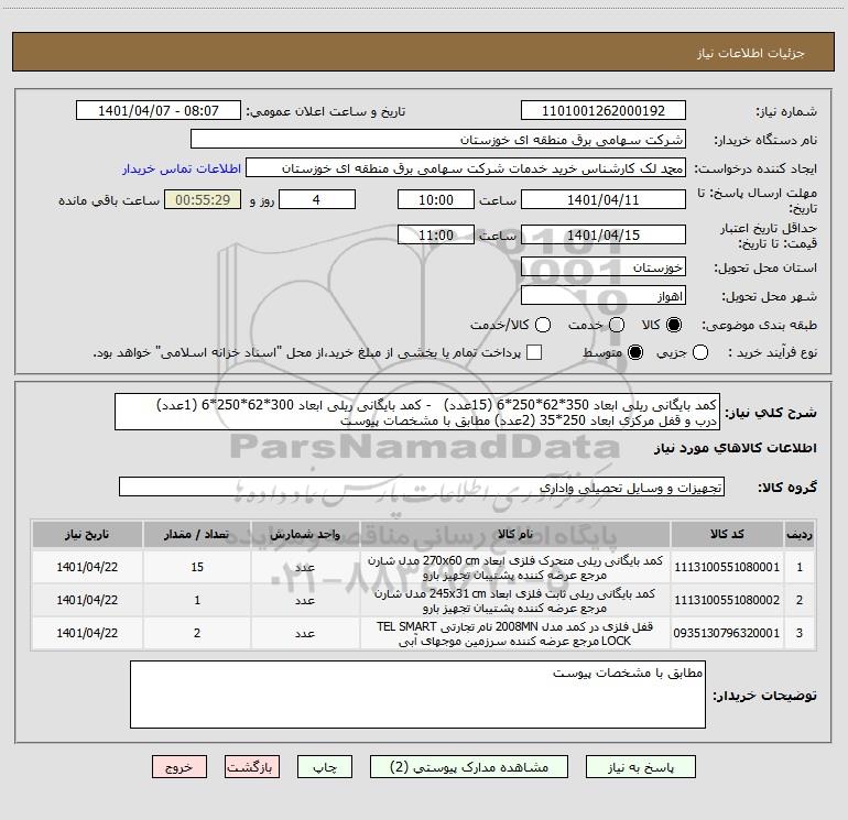 نام دستگاه خریدار:شرکت سهامی برق منطقه ای خوزستان