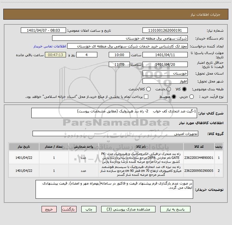 نام دستگاه خریدار:شرکت سهامی برق منطقه ای خوزستان
