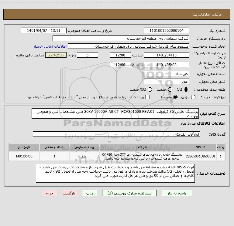 نام دستگاه خریدار:شرکت سهامی برق منطقه ای خوزستان