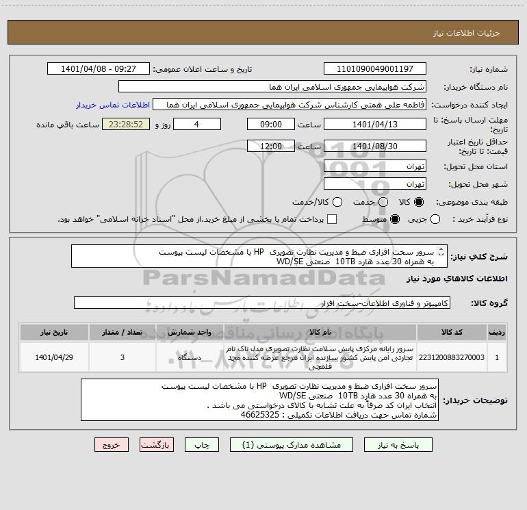 نام دستگاه خریدار:شرکت هواپیمایی جمهوری اسلامی ایران هما