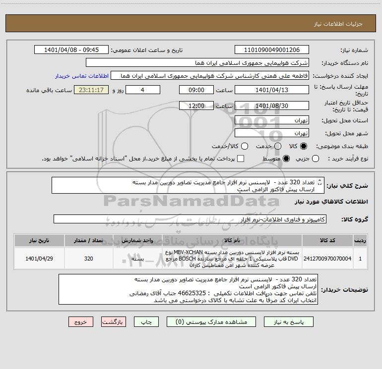 نام دستگاه خریدار:شرکت هواپیمایی جمهوری اسلامی ایران هما
