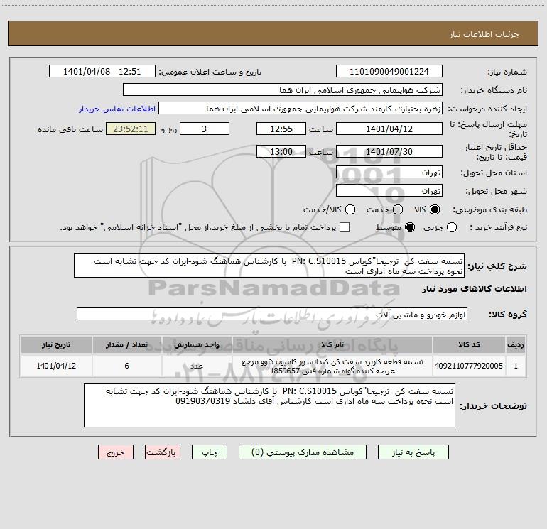 نام دستگاه خریدار:شرکت هواپیمایی جمهوری اسلامی ایران هما