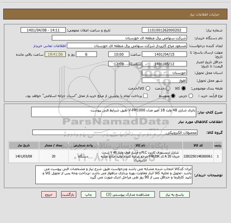 نام دستگاه خریدار:شرکت سهامی برق منطقه ای خوزستان