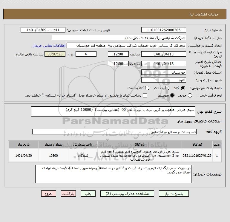 نام دستگاه خریدار:شرکت سهامی برق منطقه ای خوزستان