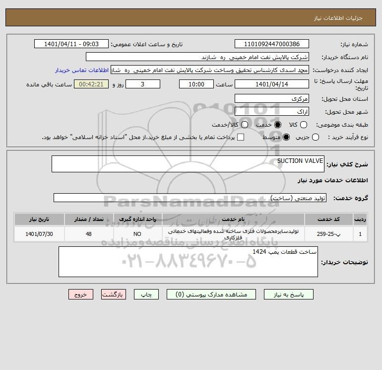 توضیحات خریدار:ساخت قطعات پمپ 1424