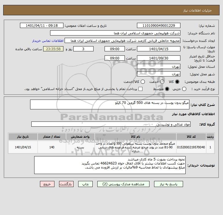 نام دستگاه خریدار:شرکت هواپیمایی جمهوری اسلامی ایران هما