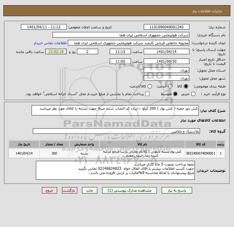 نام دستگاه خریدار:شرکت هواپیمایی جمهوری اسلامی ایران هما