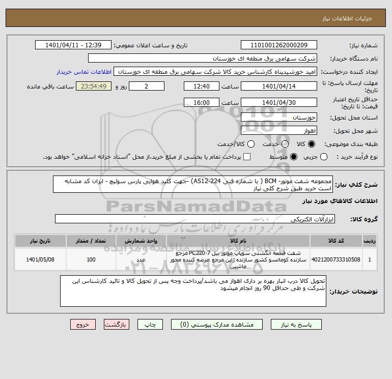 شرح کلی نیاز: مجموعه شفت موتور- BCM ( با شماره فنی AS12-224) -جهت کلید هوایی پارس سوئیچ - ایران کد مشابه است خرید طبق شرح کلی نیاز