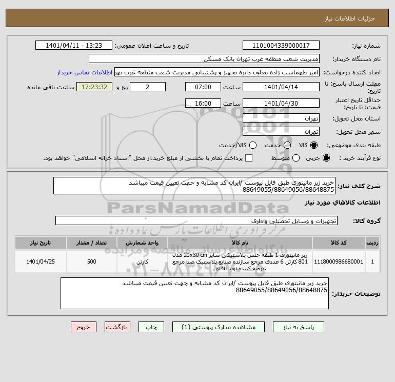استعلام خرید زیر مانیتوری طبق فایل پیوست /ایران کد مشابه و جهت تعیین قیمت میباشد 88649055/88649056/88648875, استعلام خرید زیر مانیتوری طبق فایل پیوست /ایران کد مشابه و جهت تعیین قیمت میباشد 88649055/88649056/88648875