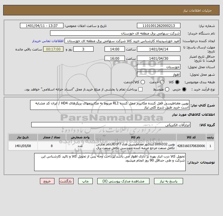 نام دستگاه خریدار:شرکت سهامی برق منطقه ای خوزستان