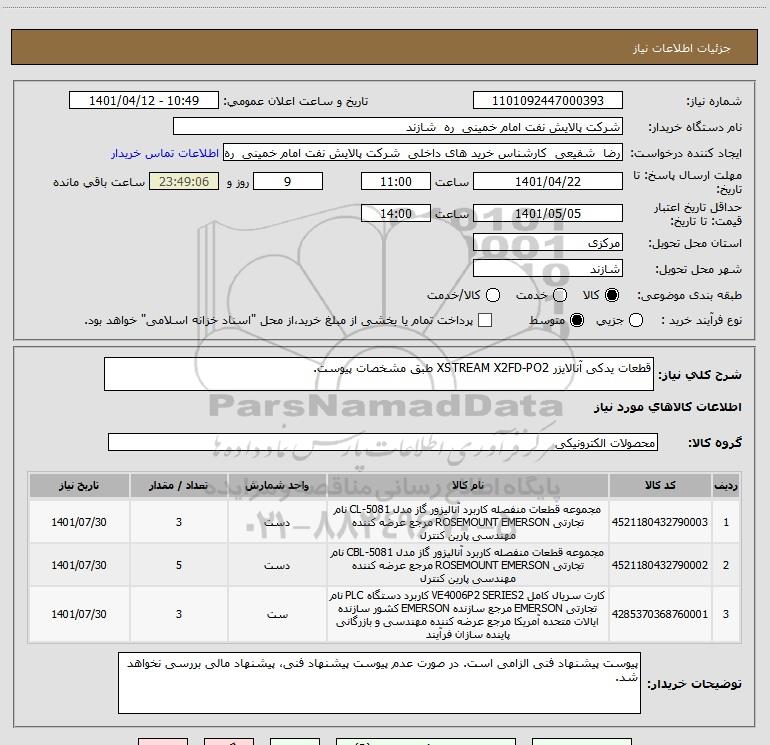 | 2 | 4521180432790002 | مجموعه قطعات منفصله کاربرد آنالیزور گاز مدل CBL-5081 نام تجارتی ROSEMOUNT EMERSON مرجع عرضه کننده مهندسی پارین کنترل | دست | 5 | 1401/07/30 |