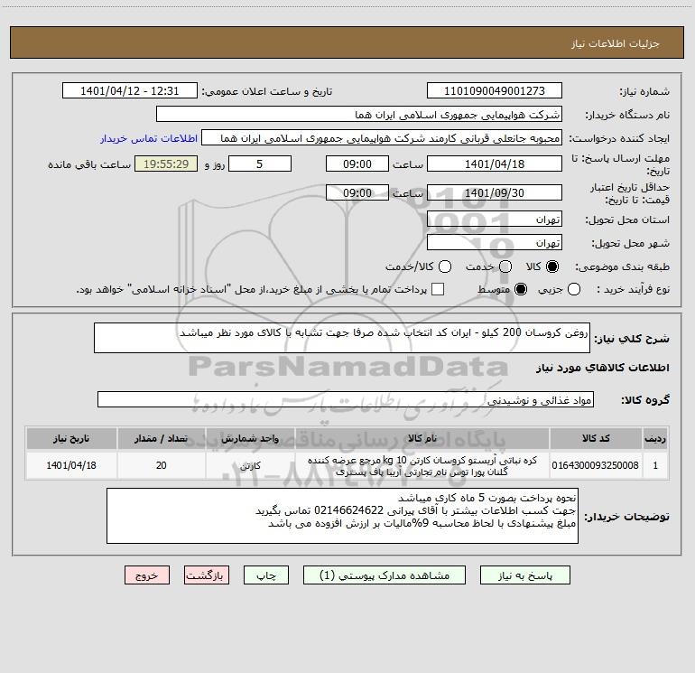 استعلام روغن کروسان 200 کیلو - ایران کد انتخاب شده صرفا جهت تشابه با کالای مورد نظر میباشد, استعلام روغن کروسان 200 کیلو - ایران کد انتخاب شده صرفا جهت تشابه با کالای مورد نظر میباشد