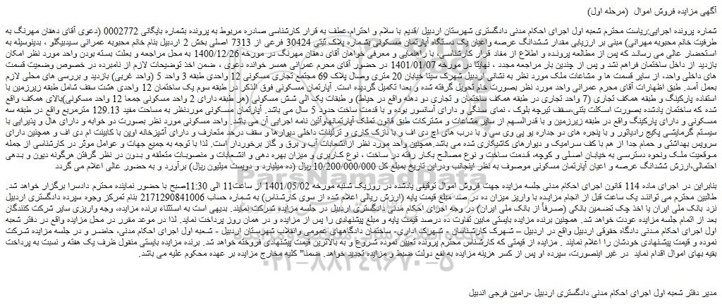 شعبه صادر کننده:شعبه اول اجرای احکام مدنی دادگستری شهرستان اردبیل/قدیم